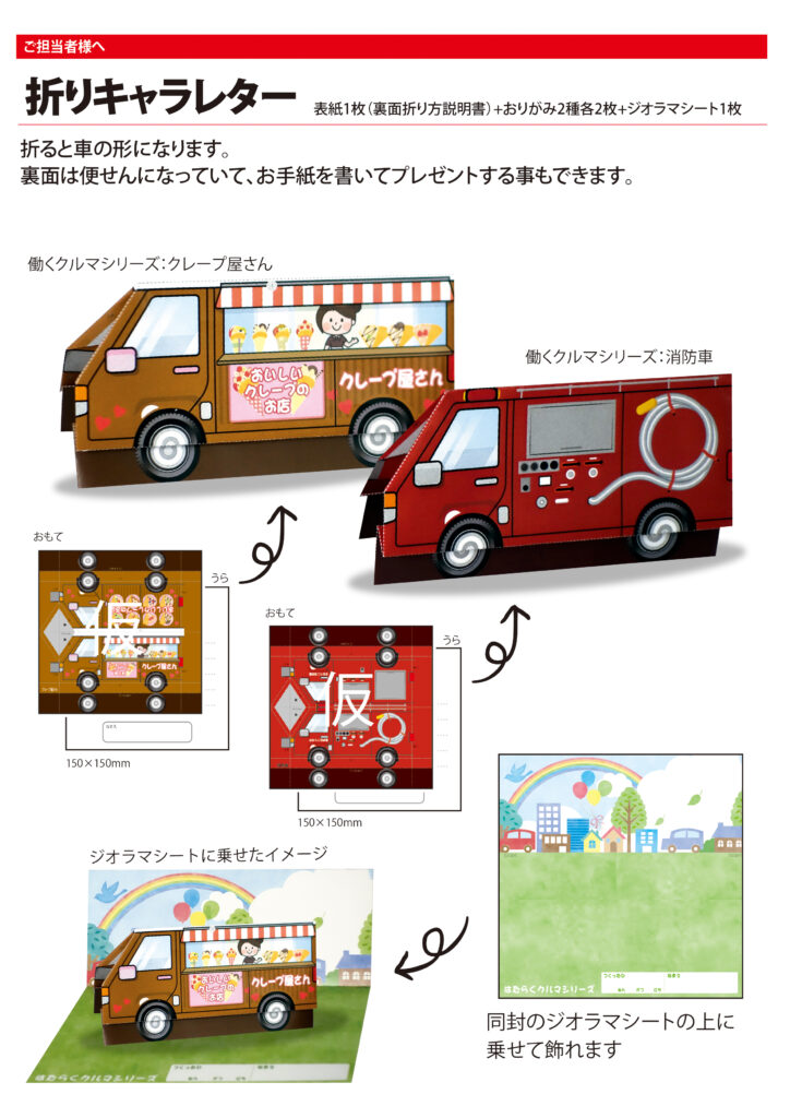 お子様向けノベルティ 車の折りキャラ